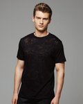 A unique dyeing process gives this cool tee a tone-on-tone burnout look.
